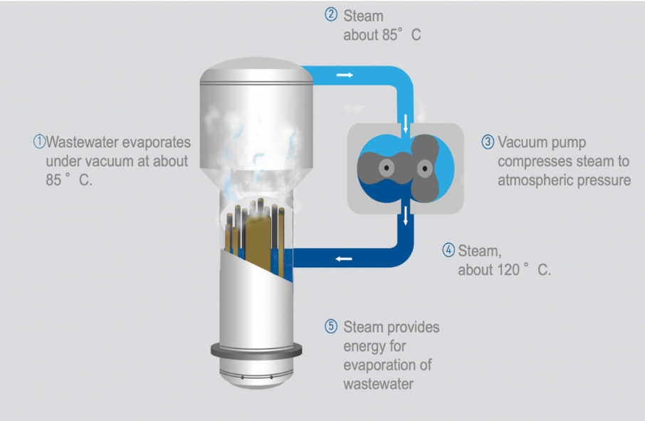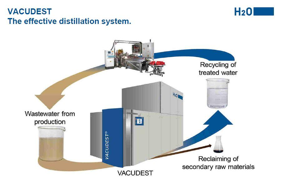Mechanical Vapour Recompression /Vacuum Evaporation Plants for the treatment of emulsions and oil-containing wastewater offer a viable alternative to the disposal of spent coolant and other oil-containing wastewater. This state-of-the-art processing technology allows for the reuse of distillate for preparing fresh emulsions, other workshop purposes, or disposal into the public sewer.